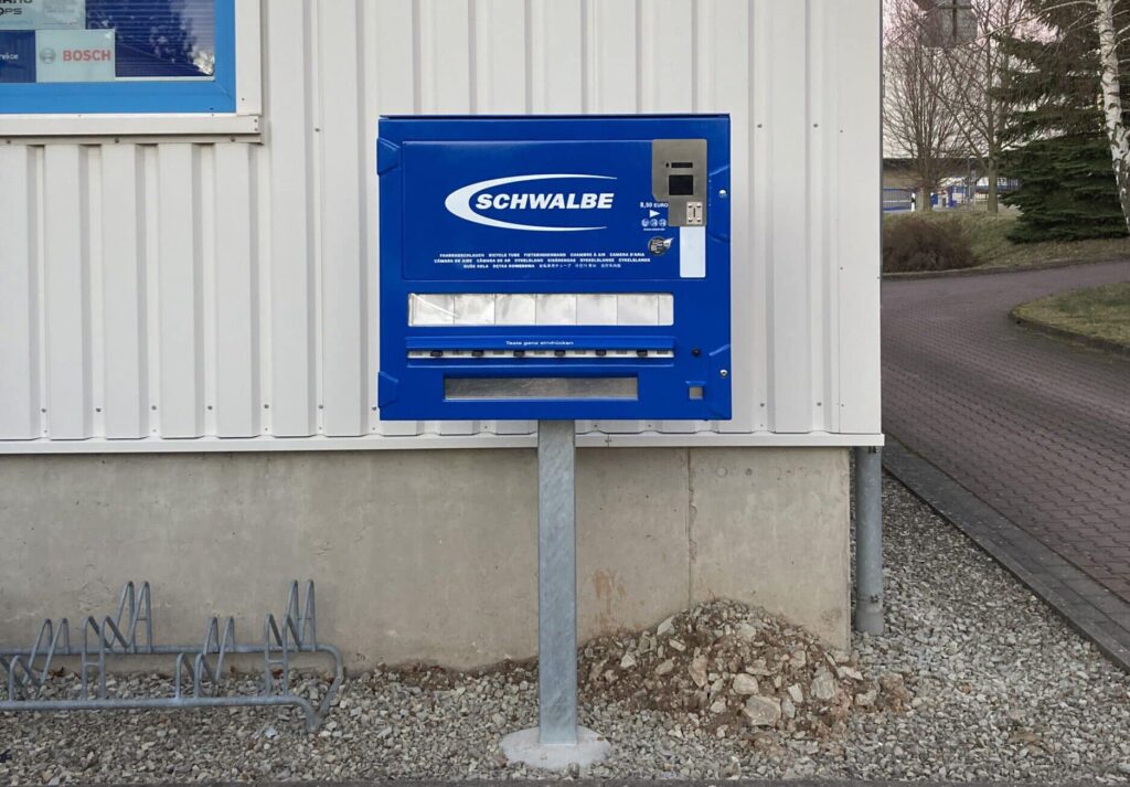 Direkt neben unserer Waschanlage findet ihr unseren Schwalbe-Schlauchautomaten. Hier könnt Ihr das ganze Jahr über, zu jeder Tageszeit , einen Fahrradschlauch in allen gängigen Größen und Breiten zulegen.