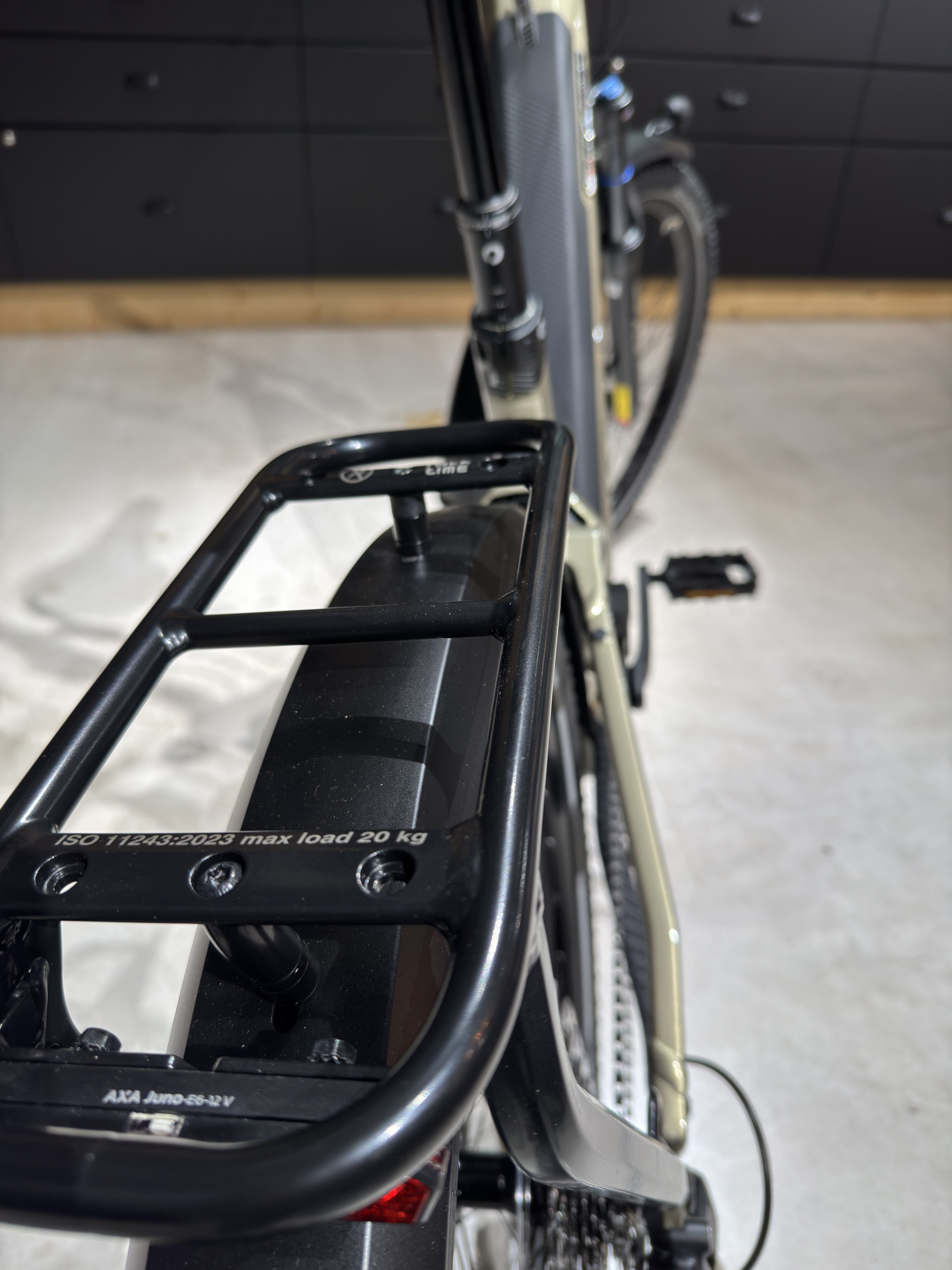 Ein fest verbautes Scharnier sorgt bei der Entnahme des Akkus dafür, dass die Abdeckklappe beim Aufklappen fest am Rahmen bleibt und sich der Akku dennoch leicht entnehmen lässt. Der Akku muss jedoch nicht zwingend zum Laden entnommen werden und kann auch direkt am Rad geladen werden.
