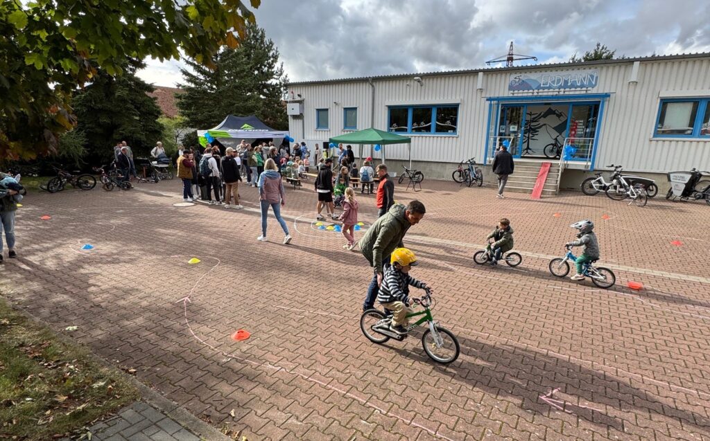Draußen verwandelte sich unser Hof dank bunter Kreide in einen kleinen Parcour, den die Kinder mit ihren Rädern (und ordentlich Tempo) erkunden konnten.
